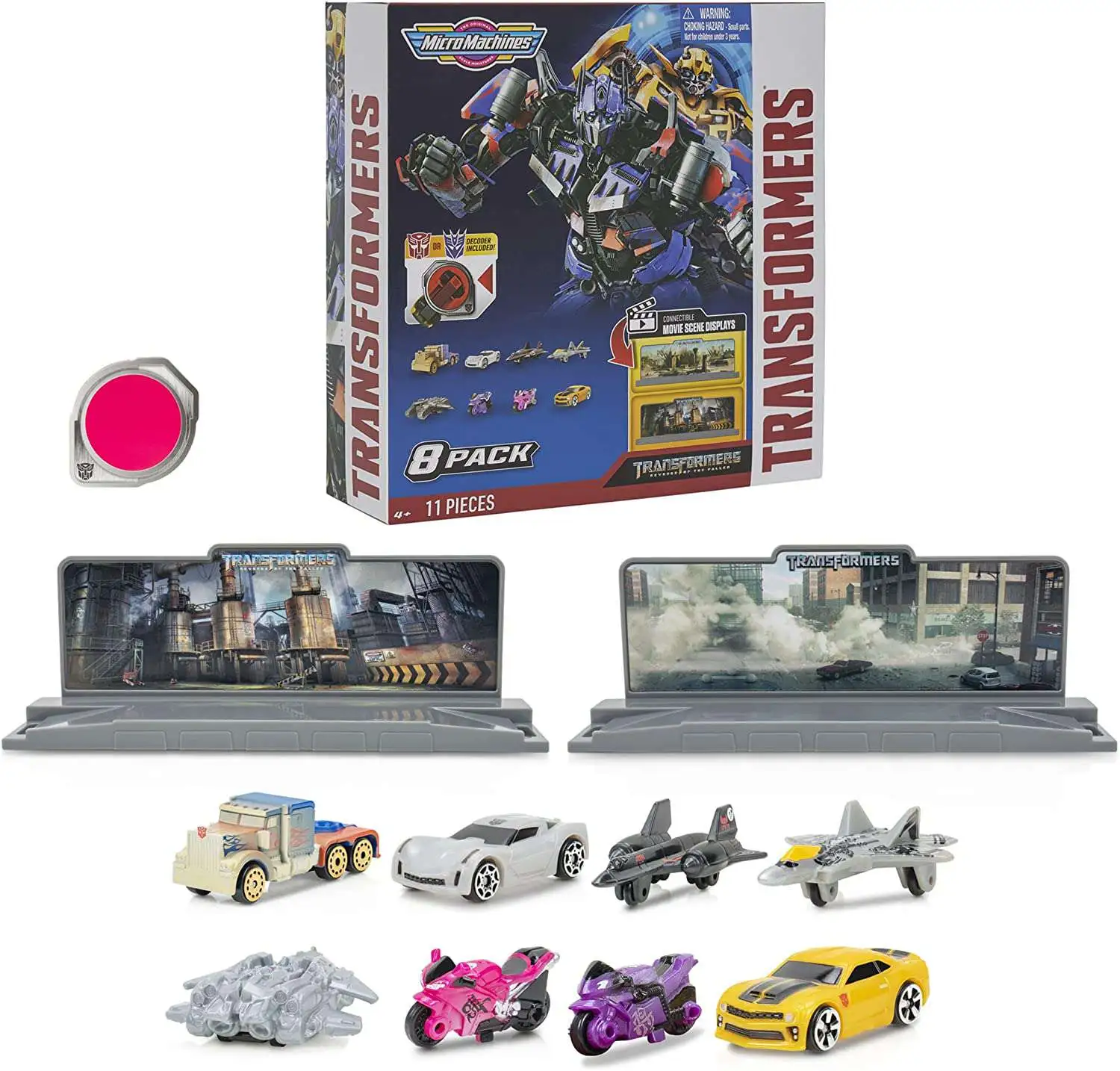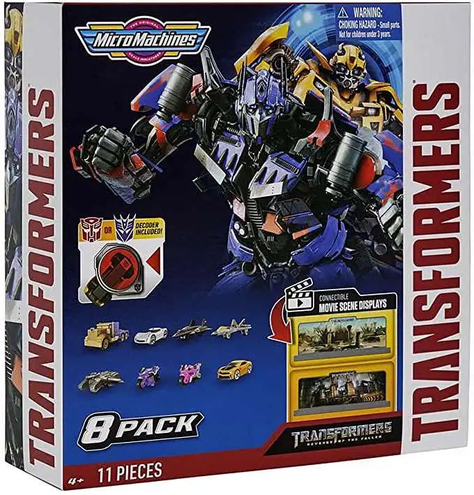 The Transformers return to the world of Micro Machines to resurrect the Fallen! Join the Desert Damaged Optimus Prime and the Autobots as they hunt for the ancient Seeker, Jetfire. Accelerating through movie screens and racing into your world, these resourceful robots-in-disguise can collect allies and energon in all your Micro Machines playsets. Also featuring an Alien Tank Megatron, and a hidden alliance decoder, this eight-car set contains far more than meets the eye. Its time to earn the Autobot Matrix of Leadership so rise up and roll out!