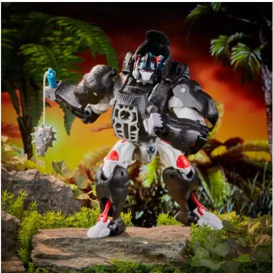 Optimus Primal figure comes with a skull flail, 2 Cyber Blades, and 4 missile accessories. Converts from gorilla to robot mode in 7 steps.