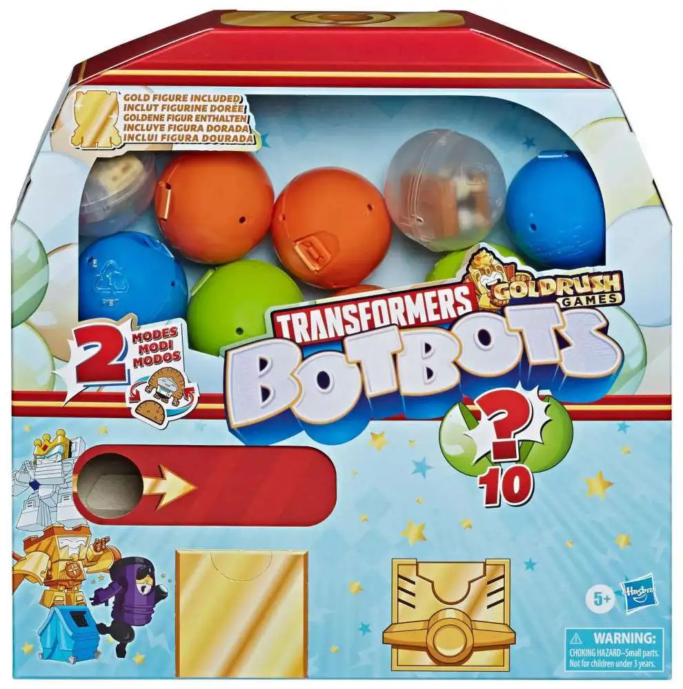 Purchasers receive 1 Surprise Unboxing: Gumball Machine pack with 10 surprises: 5 BotBots figures, 1 gold figure, and 4 stickers.