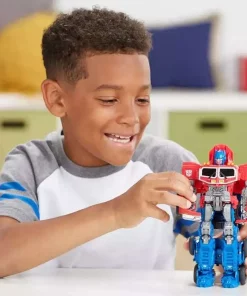 Smash into battle with Transformers Smash Changers! Convert Optimus Prime figure from toy truck to robot mode in 3 steps by smashing! Manually convert back to alt mode in 11 steps.