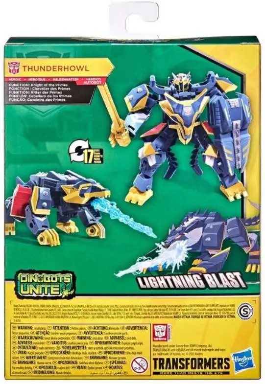 Simply convert Thunderhowl figure from robot to wolf mode in 23 steps. The last step of conversion activates the figures Lightning Blast attack in both robot and wolf mode! Once converted, move can be repeated through easy reactivation steps. The battle between heroic Autobots and evil Decepticons continues on the Bumblebee Cyberverse Adventures animated series! Discover the unique powers and skills of each Cyberverse character, and see how those powers will be used to defend Cybertron or threaten it.