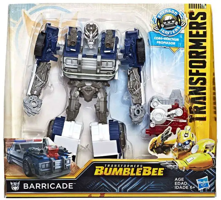 The lifeblood of Transformers robots, Energon fuels the epic action on Earth and beyond. Now, imagine harnessing the Transformers energy source with Energon Igniters figures. Convert this Energon Igniters Nitro Series Barricade figure between robot and police car modes in 9 steps. Then plug the Energon Igniters core included in pack into the vehicle and push down to unleash driving action. This Barricade figure stands at a 7-inch scale with eye-catching detailing. The Energon Igniters core unleashes the power in all Energon Igniters figures (each sold separately).