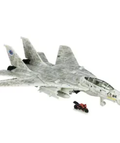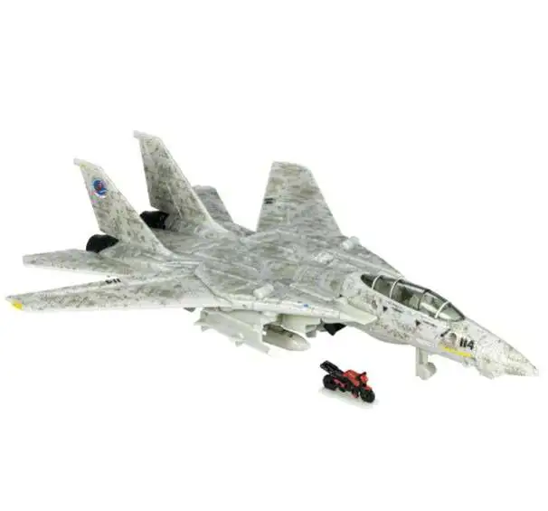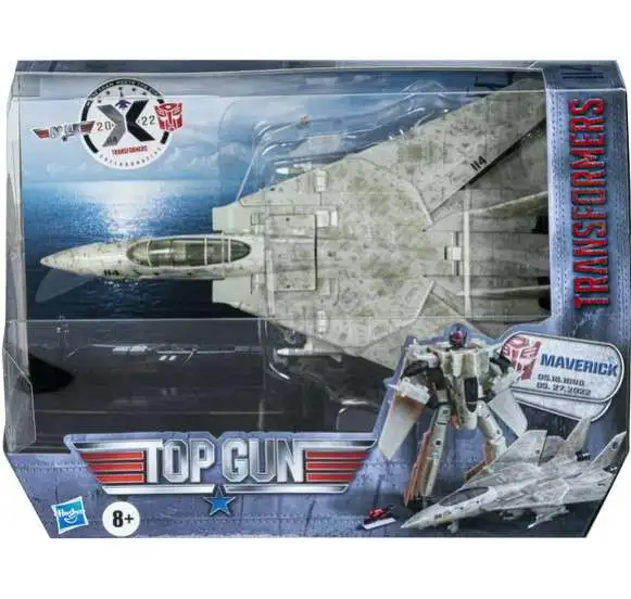 Worlds collide in this Transformers-Top Gun mash-up pack! The iconic Grumman F-14 Tomcat jet from the Top Gun film is now a Transformers robot, called Maverick! (Not to be confused with that other guy.) And who makes a better wingman than a Transformers robot? He’s always ready to go vertical in jet mode or dominate a slow-mo volleyball montage in robot mode. This Maverick robot figure features movie-inspired details, folding jet wings, and includes 4 missile accessories that can be mounted on figures arms in robot mode and under wings in jet mode. Also includes a screen-inspired miniature motorcycle accessory. Converts from robot to jet mode in 25 steps.