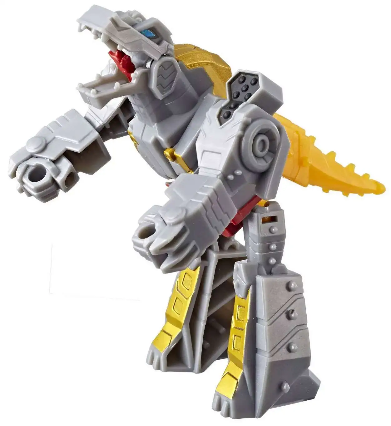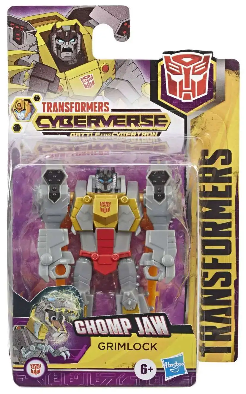 Easily convert and attack with Transformers Cyberverse Action Attackers toys (each sold separately)! Simply convert Grimlock figure from robot to dinosaur mode in 5 steps. The last step of conversion activates the figures Chomp Jaw Action Attack move! Once converted, move can be repeated through easy reactivation steps.