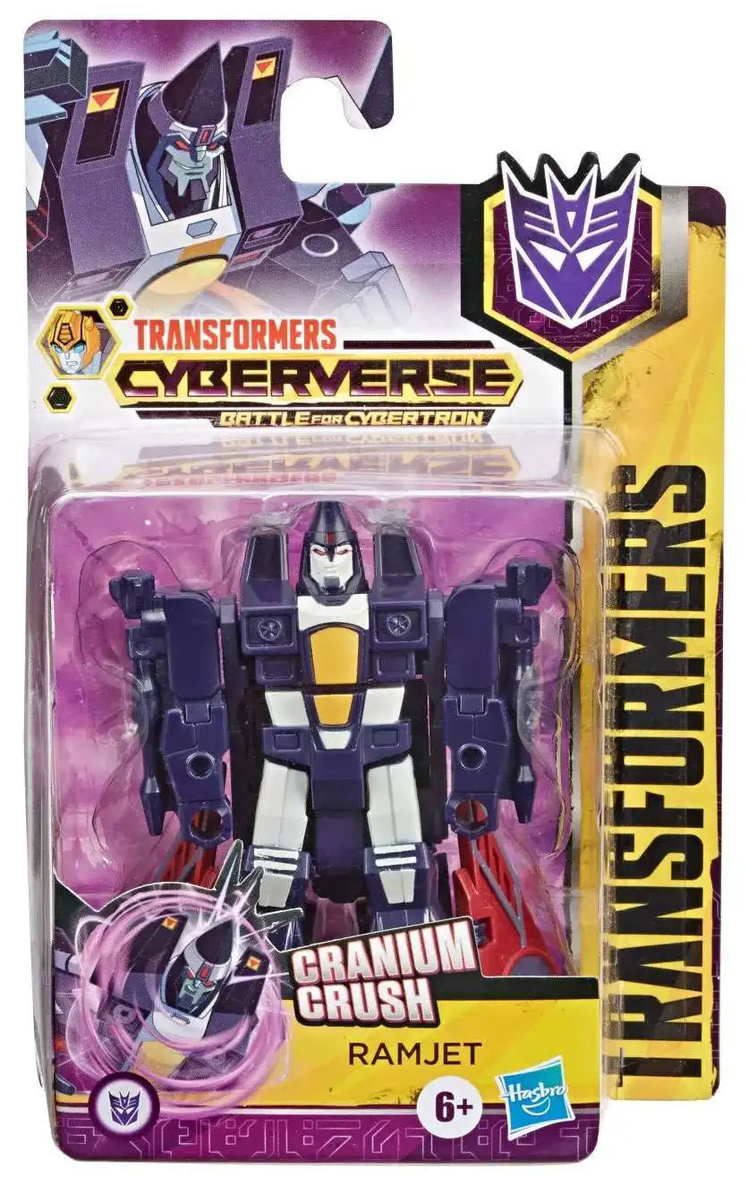 Easily convert and attack with Transformers Bumblebee Cyberverse Adventures Action Attackers toys (each sold separately)! Simply convert Ramjet figure from robot to jet mode in 5 steps. The last step of conversion activates the figures Cranium Crush Action Attack move! Once converted, move can be repeated through easy reactivation steps.