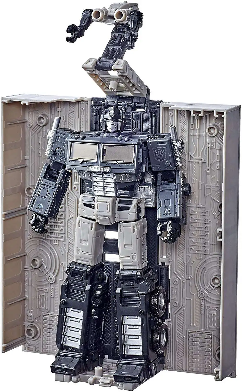 GRAYSCALE SPARKLESS DECO: Figure features grayscale deco inspired by the appearance of Optimus Prime in the 1986 film when his death causes all his color to drain.