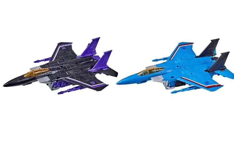 Decepticon Seekers, Skywarp and Thundercracker, convert into classic G1 jet modes in 30 steps and come with 4 weapon accessories. Fans can add to their Seeker army collections!