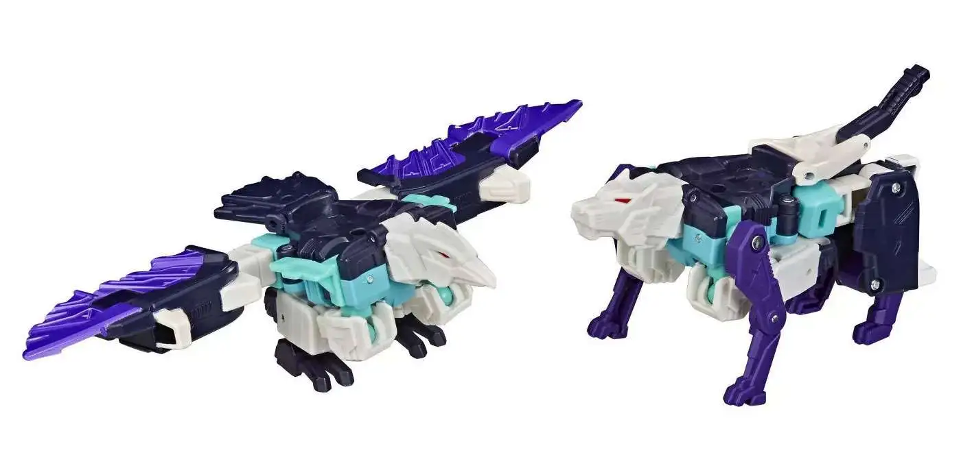 This pack features Decepticon Clones Pounce and Wingspan in one exciting pack! The vicious infiltrator, Decepticon Pounce, converts to puma mode in 9 steps. The driven Decepticon data processor, Wingspan, converts to eagle mode in 7 steps.