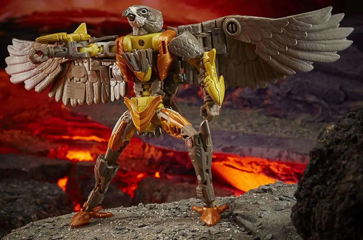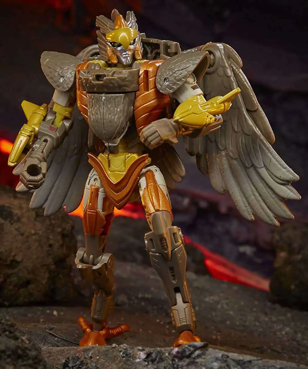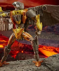 Unleash the primal power of the beasts with this Airazor collectible figure, featuring a detailed beast mode with intricate molded feather texture. Toy converts to Beast Wars-inspired falcon mode in 22 steps, featuring wing, lower beak, and tail feather articulation that allow for more realistic falcon poses. Comes with 2 Photon Blaster accessories that attach to figure’s wrists. Weapons aside, you don’t want to be at the wrong end of those talons