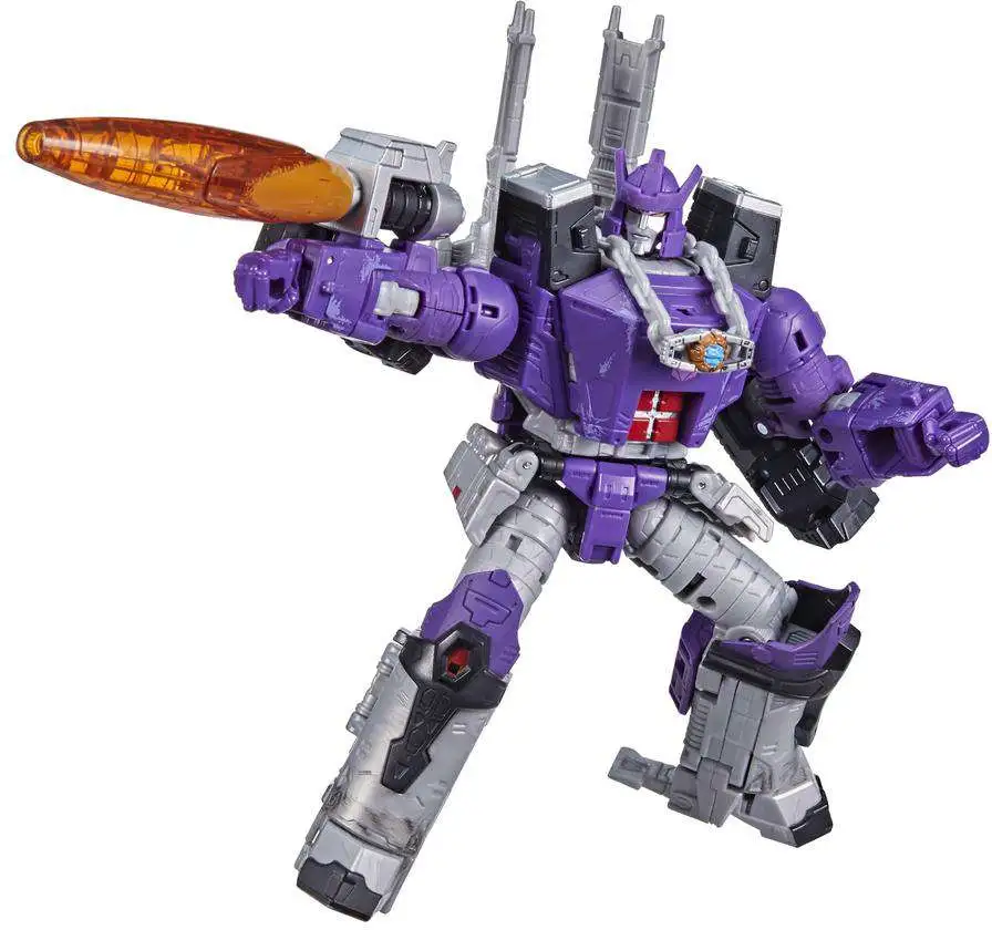 Includes Transformers Generations War for Cybertron: Kingdom Leader Class figure, 4 accessories, Golden Disk card, and instructions.