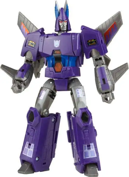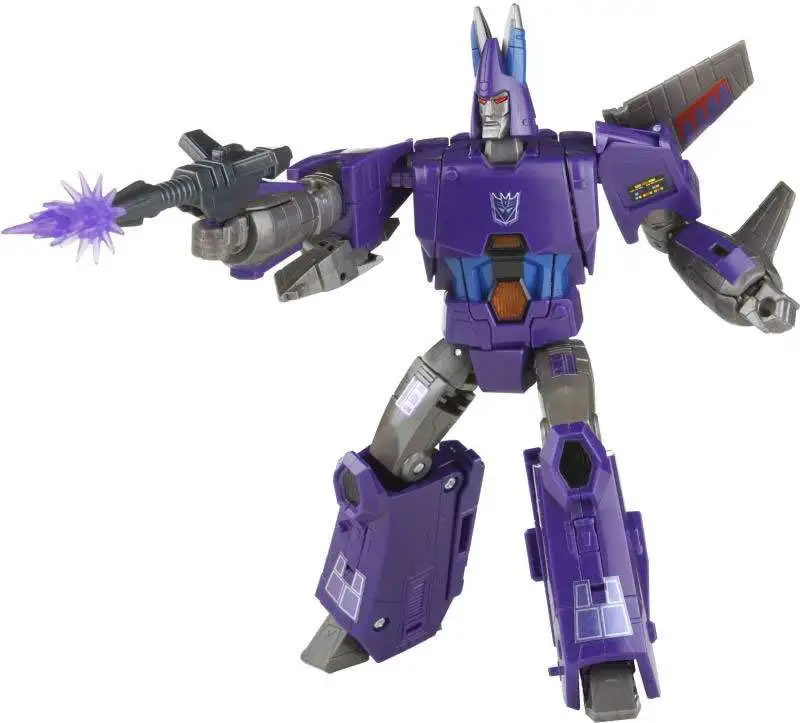 This special edition Cyclonus figure is inspired by the classic 1986 toy release and converts from robot to jet mode in 33 steps. Includes a Nightstick figure that converts from robot to blaster mode in 4 steps. Also comes with 2 blast effects and a sheet of foil labels and sticker decals to decorate the Cyclonus figure. It’s just like the classic toy! Includes 2 figures, 2 accessories, foil sticker sheet, and instructions.