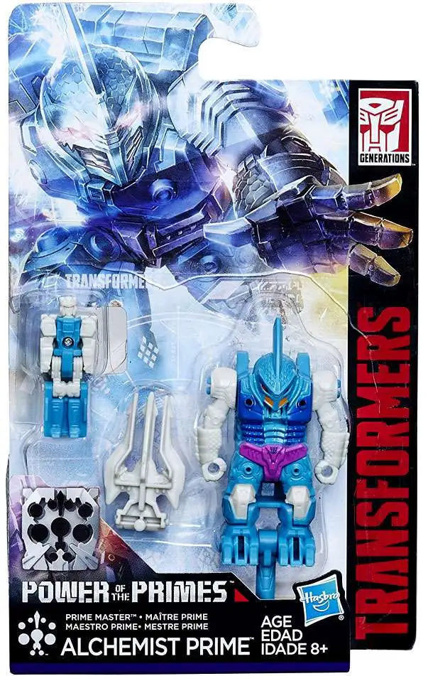 Transformers Generations Power of the Primes Prime Master figures are 1.5-inch-scale figures that work with other figures. Attach this Prime Master figure to a Power of the Primes Deluxe, Voyager, or Leader Class figure (each sold separately) and imagine that bot wields the power of Alchemist Prime.