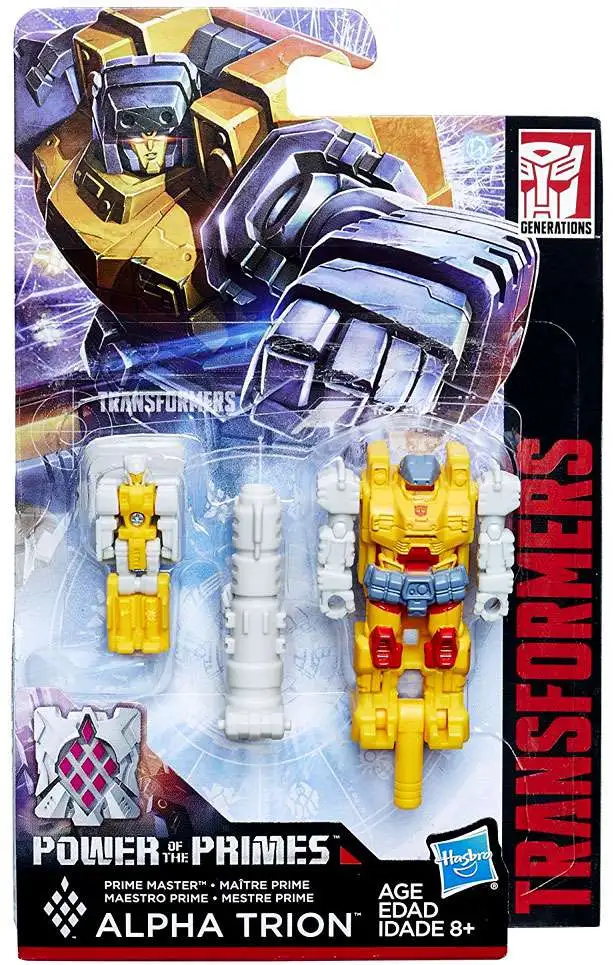 Transformers Generations Power of the Primes Prime Master figures are 1.5-inch-scale figures that work with other figures. Attach this Prime Master figure to a Power of the Primes Deluxe, Voyager, or Leader Class figure (each sold separately) and imagine that bot wields the power of Alpha Trion.