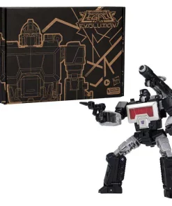 Did you miss him? This figure is based on the original e-HOBBY exclusive Magnificus action figure released in 2005. Hasbro’s Transformers Generations Selects Legacy Deluxe Class Magnificus takes the Perceptor body and wants to paint it black – and succeeds. Figure has unique head sculpt, blaster accessory, and a fun transformation.