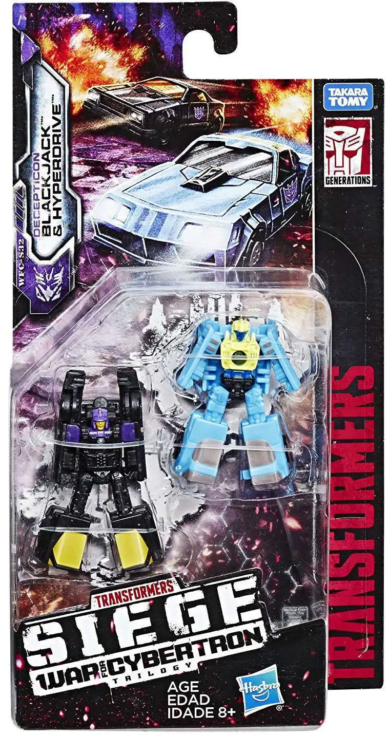 Build the ultimate battlefield with Transformers War for Cybertron: Siege collectible figures, featuring classic G1 characters. (Each sold separately. Subject to availability). Siege plunges fans into the epic fight to survive on the final day of the Autobot and Decepticon battle to control Cybertron. The Decepticon resistance army and the Autobot counter-resistance fighters gear up with the universe’s most advanced modular weaponry, including the weapon modes of combined Micromaster figures — sentient bots that combine to form weapons. WFC-S32 Decepticon Sports Car Patrol figures Decepticon Blackjack and Hyperdrive convert in 5 and 3 easy steps from robot mode to sports car modes. Sports car modes combine to form the Multi-Mech Combustion Cannon weapon accessory. Use the weapon mode to equip other Siege figures (each sold separately) with larger mission loadouts. Transformers and all related characters are trademarks of Hasbro.