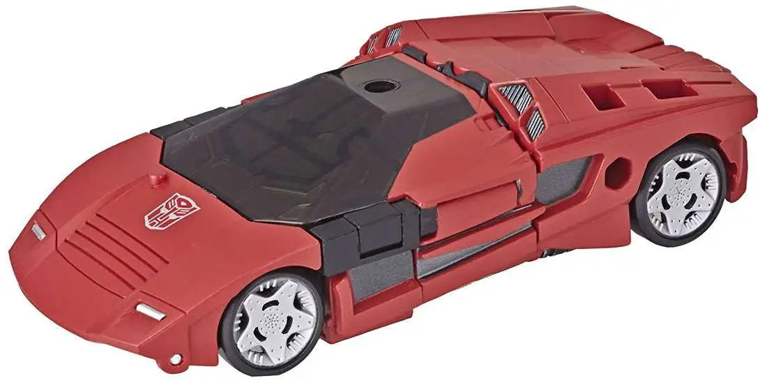 The WFC-S10 Sideswipe figure features story-inspired battle-worn deco and is equipped with a W-10 Photo-Pulser Proton Launcher weapon accessory and a W-5 Gyro Blaster weapon accessory. The 2 weapon accessories mod-lock together to form the larger RR Gyrofuse Axleswitch Hyper-Blaster. Multiple C.O.M.B.A.T. System weapons ports in bot and vehicle modes allow fans to attach weapons to figure in custom weapon configurations.