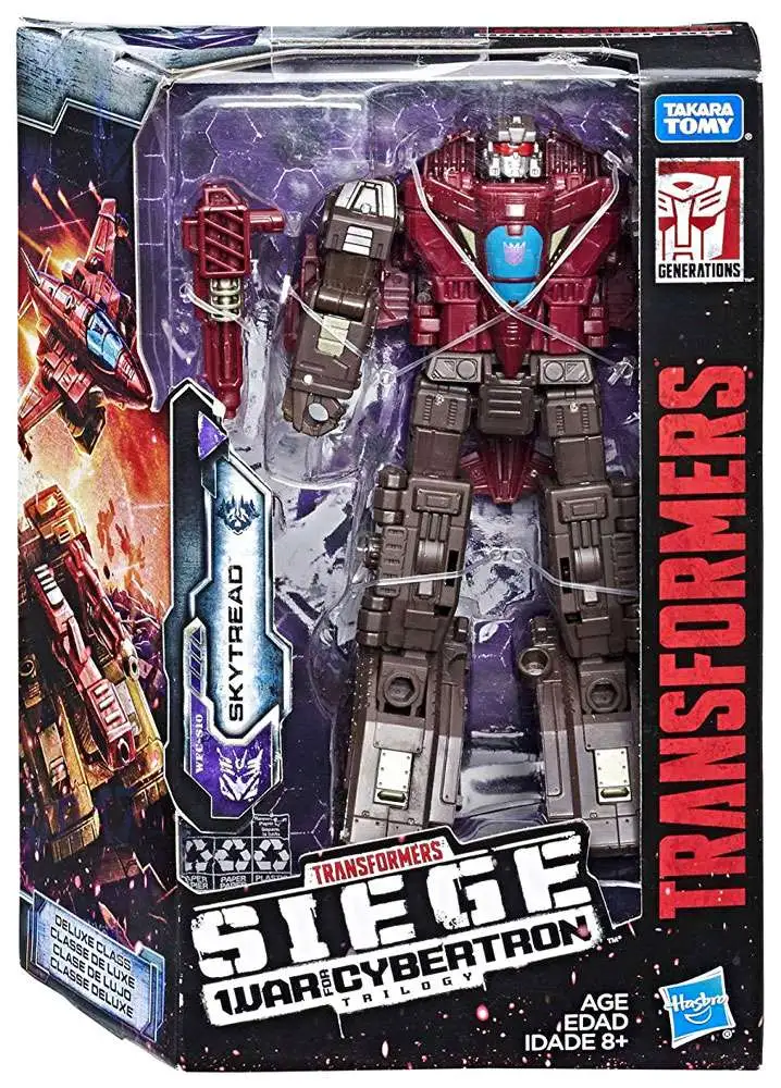 The WFC-S7 Skytread figure features story-inspired battle-worn deco and is equipped with a HV Electron Breacher weapon accessory and a EM24 IR Laser Launcher weapon accessory. The 2 weapon accessories mod-lock together to form the larger LRRF Suspension-Ray Super-Launcher. Multiple C.O.M.B.A.T. System weapons ports in bot and vehicle modes allow fans to attach weapons to figure in custom weapon configurations.buy = ‘Y’;