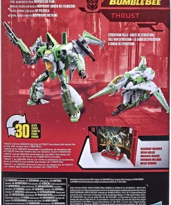 Studio Series has always allowed fans to reach past the big screen and build the ultimate Transformers collection inspired by iconic movie scenes from the Transformers movie universe. Now, the Studio Series line is expanding to include the epic moments and characters from the classic 1986 The Transformers: The Movie, bringing fans a whole new series of screen-inspired figures to collect! (Each sold separately. Subject to availability.) This Studio Series 76 Voyager Class Transformers: Bumblebee-inspired Thrust figure converts from robot to tetrajet mode in 30 steps. Remove backdrop to showcase Thrust in the Cybertron Falls scene. In the Cybertron Falls scene from Transformers: Bumblebee, the Autobot resistance retreats to escape the planet as Cybertron falls under Decepticon control. Thrust and the seekers blast the Autobot launchpad with missile fire to stop their escape. Pose the figure out with the included blaster and Null Ray accessories and imagine recreating this classic movie moment!