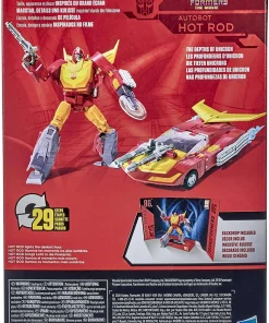 This Studio Series 86 Voyager Class The Transformers: The Movie-inspired Autobot Hot Rod figure converts from robot to sports car mode in 29 steps. Remove backdrop to showcase Hot Rod in the The Depths of Unicron scene. In the The Depths of Unicron scene from The Transformers: The Movie, Hot Rod embraces his destiny, becoming Rodimus Prime and defeating Unicron. Pose the figure out with the included Matrix of Leadership and attach the energy effect to recreate this classic movie moment.buy = ‘Y’;