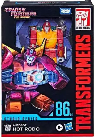 This Studio Series 86 Voyager Class The Transformers: The Movie-inspired Autobot Hot Rod figure converts from robot to sports car mode in 29 steps. Remove backdrop to showcase Hot Rod in the The Depths of Unicron scene. In the The Depths of Unicron scene from The Transformers: The Movie, Hot Rod embraces his destiny, becoming Rodimus Prime and defeating Unicron. Pose the figure out with the included Matrix of Leadership and attach the energy effect to recreate this classic movie moment.