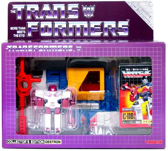 Here’s your chance to own a very cool part of Transformers history. Blaster and Soundwave during the Headmasters series destroyed each other in battle, when they were recreated they each had new paint schemes and could hold 2 cassettes each! Now you can own the evolved Blaster – Twincast! E-Hobby has also partnered this Autobot hero with a new e-Hobby exclusive cassette Flip Sides!