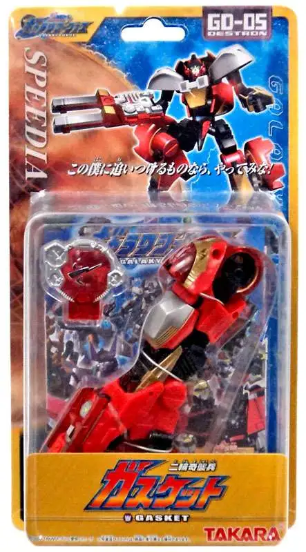 Gasket is one killer Destron (Decepticon) Motorcycle! He features a wicked looking red and white color scheme with gold trim! Includes a special Spark key that activates hidden weapon system! Includes an exclusive trading card! Order now!