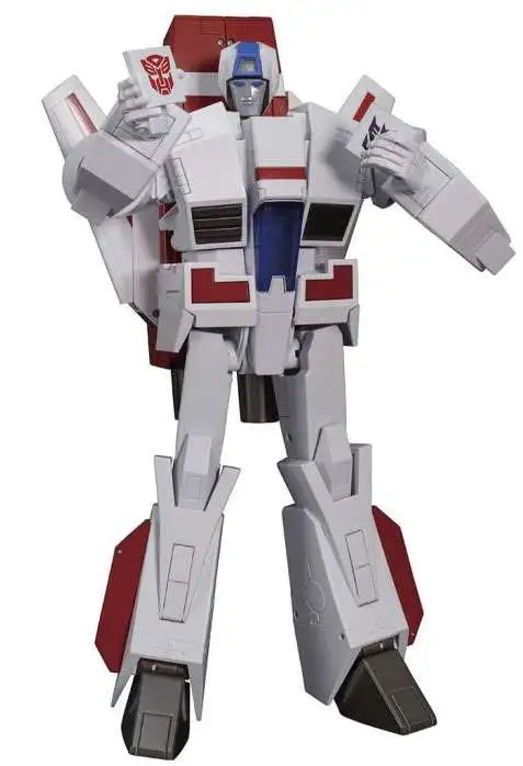 Just like you remember from “Fire in the Sky” and “Fire on the Mountain,” it’s the Transformers Masterpiece Edition MP-57 Skyfire! Converts from space ship to robot and back again, and is loaded with fun accessories. This giant robot includes a mini figure of Optimus Prime, a mini figure of Jazz, a mini figure of Wheeljack, an alternate surprised face, an alternate laughing face, a face mask, a blaster, two alternatre chest panels, blast effect parts, a base, a display base arm, adapters, instructions, and a character card. That’s a lot of fun, plus he’s scaled to tower over your other Masterpiece Edition figures (sold separately!) Bring home Starscream’s ex-best pal, the ex-Decepticon Autobot of Science, Skyfire!