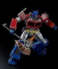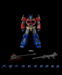 Transformers MDLX Optimus Prime is approximately 7 (178 mm) tall, with approximately 48 points of articulation and a die-cast metal frame. Accessories include Ion Blaster, Energon Axe, Autobot Matrix of Leadership, and five pairs of interchangeable hands.