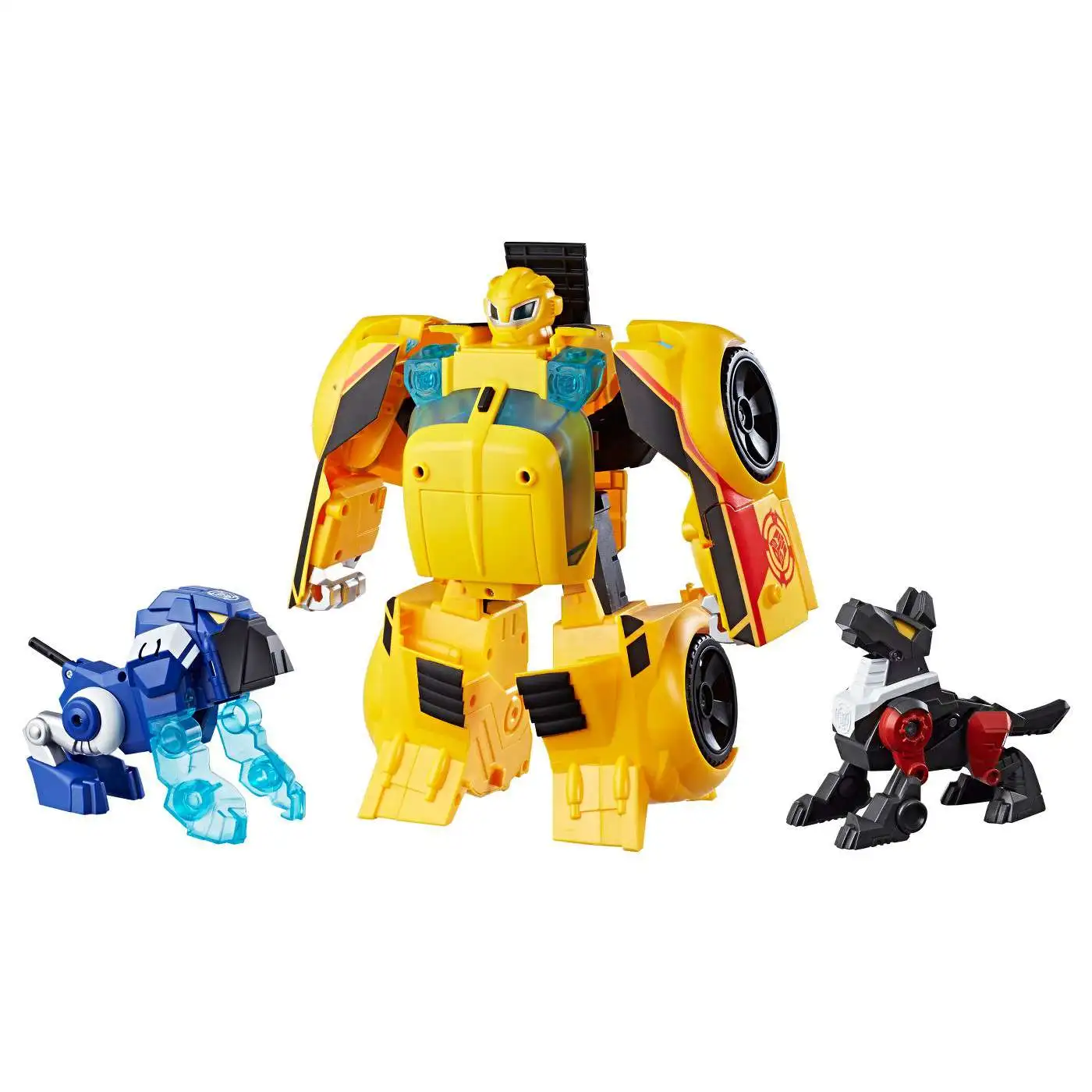 Brave and bold, Bumblebee races in with his rescue pets to save the day! Sized right for small hands, kids can convert the Bumblebee Rescue Guard figure from vehicle mode to bot mode and back again with Easy 2 Do conversion. Both vehicle and bot modes feature electronic lights and sound effects! This 10-inch figure gets a rescue boost with the rescue pet figures Sergeant Slobber and Growl the K-9 Bot. Kids can convert the 4.5-inch tall rescue pet figures and pretend to supercharge the Bumblebee Rescue Guard figure with armor, a capture claw, and projectile launcher! Robots and humans saving the day, working together the Rescue Bots way!