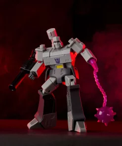 The ruthless Decepticon leader, Megatron, from The Transformers animated series features a Fusion Cannon accessory, 4 alternate hands including one that holds an Energon cube, and fans can also replace hand with the Energon Mace accessory.