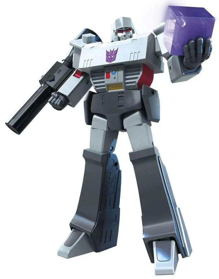 The ruthless Decepticon leader, Megatron, from The Transformers animated series features a Fusion Cannon accessory, 4 alternate hands including one that holds an Energon cube, and fans can also replace hand with the Energon Mace accessory.