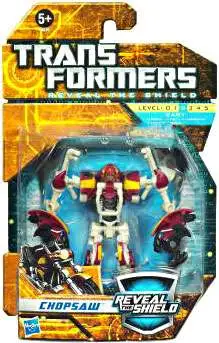 Race into action with this fierce CHOPSAW figure! Press the button to reveal this figures robot allegiance and then prepare him for a battle. In robot mode, this fighter is as tough as they come. When its time to chase down his enemies, convert him to chopper vehicle mode so he can tear up the streets in hot pursuit!