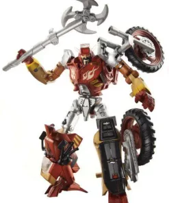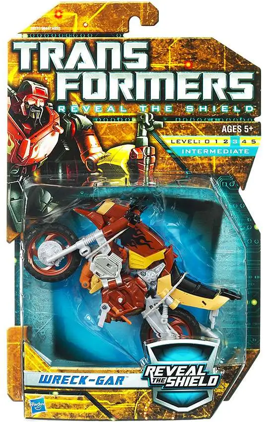 Wreck-Gar is obsessed with Earth television and may be just a little bit flaky. He communicates almost exclusively in quotes from commercials and late-night movies and the grin on his face never fades, even in the heat of battle. Most Autobots have no idea what he’s talking about most of the time, but they appreciate having his axe on their side. Turn the tables on enemy forces when you throw this warrior into the fight. Press the button to reveal this figure’s robot allegiance and then prepare him for a battle. Your Wreck-Gar figure is dedicated to destroying any opponent and his four-bladed battle axe will help you to get the job done. If robot combat turns into a car chase, convert your warrior into motorcycle vehicle mode and send him racing off to rule the road.