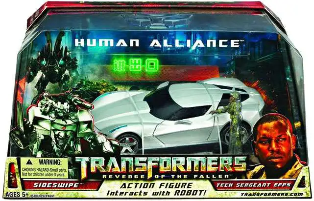 Best buddies forever! From the Transformers: Revenge of the Fallen movie, this detailed pair includes a Tech Sergeant Epps Action Figure and a Sideswipe robot-to-vehicle Transformer that features awesome weapons and converts to a Stingray concept car in vehicle mode. And Epps interacts with Sideswipe! This is a great item for the older collector and the kid who wants a toy with more moving points and a lot of detail! Ages 5 and up.