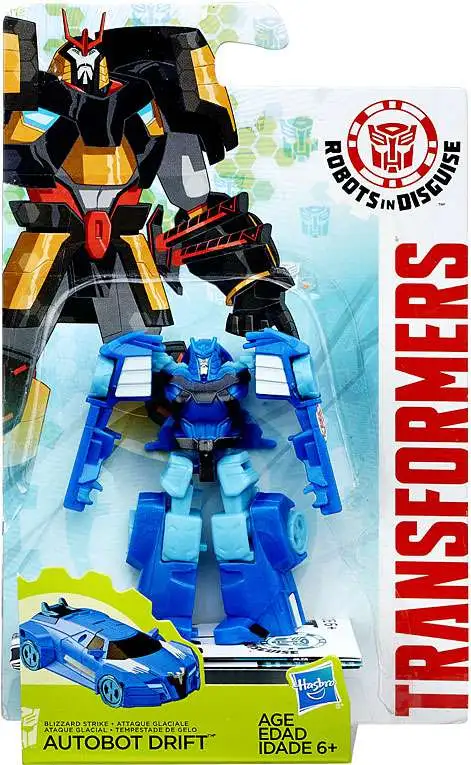 In the Transformers: Robots in Disguise animated series, Bumblebee leads a team of Autobots. Their mission: capture escaped Decepticon prisoners that are loose on Earth and do it without being discovered. Join Bumblebee and his team and help them chase down Decepticons with Transformers: Robots in Disguise figures! Autobot Drift is the bot to have on your side when the going gets tough. He is a master swordsman who always remains calm and controlled during combat, even under heavy enemy fire. Collectible Transformers: Robots in Disguise Legion Class figures are smaller-scale figures that feature classic conversion. Each figure converts in 10 steps or less. This Legion Class Blizzard Strike Autobot Drift figure changes from robot to sports car and back in 5 steps and features special snow camouflage armor. Transformers: Robots in Disguise figures unlock content in the Transformers: Robots in Disguise app! Scan the Autobot shield on this figure to unlock Blizzard Strike Autobot Drift and a sword. Download the app, scan the shield to activate the code, unlock, and play! App content is for ages 9 and up. See below for details. Transformers and all related characters are trademarks of Hasbro.