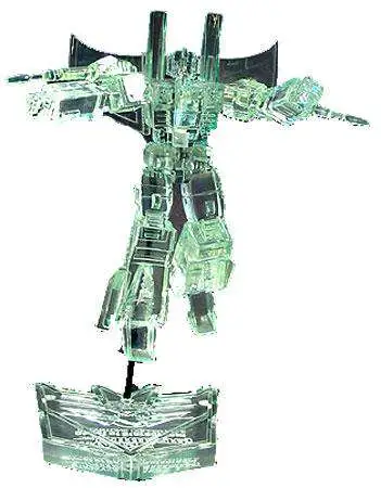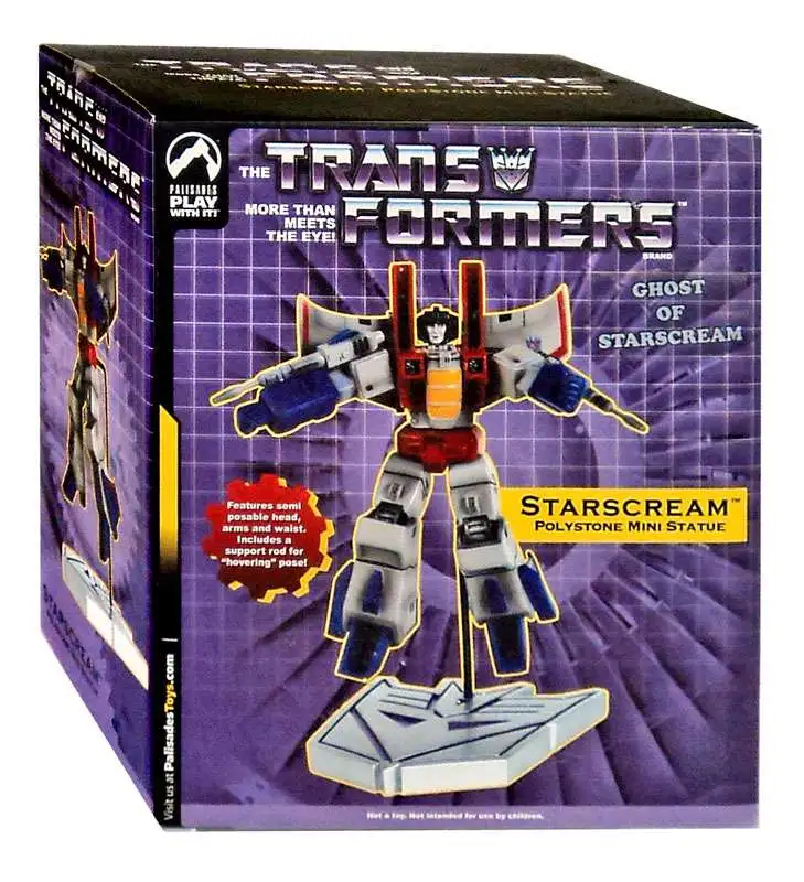 Vain, ruthless, supremely confident, and one of the most lethal of Megatron’s Decepticon warriors, Starscream never fails to deliver mayhem – often directed at his own leader! And did we mention he’s dead?!? That’s right, paying tribute to the classic Generation One episodes, this exclusive offers this “ghost” version of Starscream as a 6.5 inch clear statue, with minimal articulation at the waist and neck.