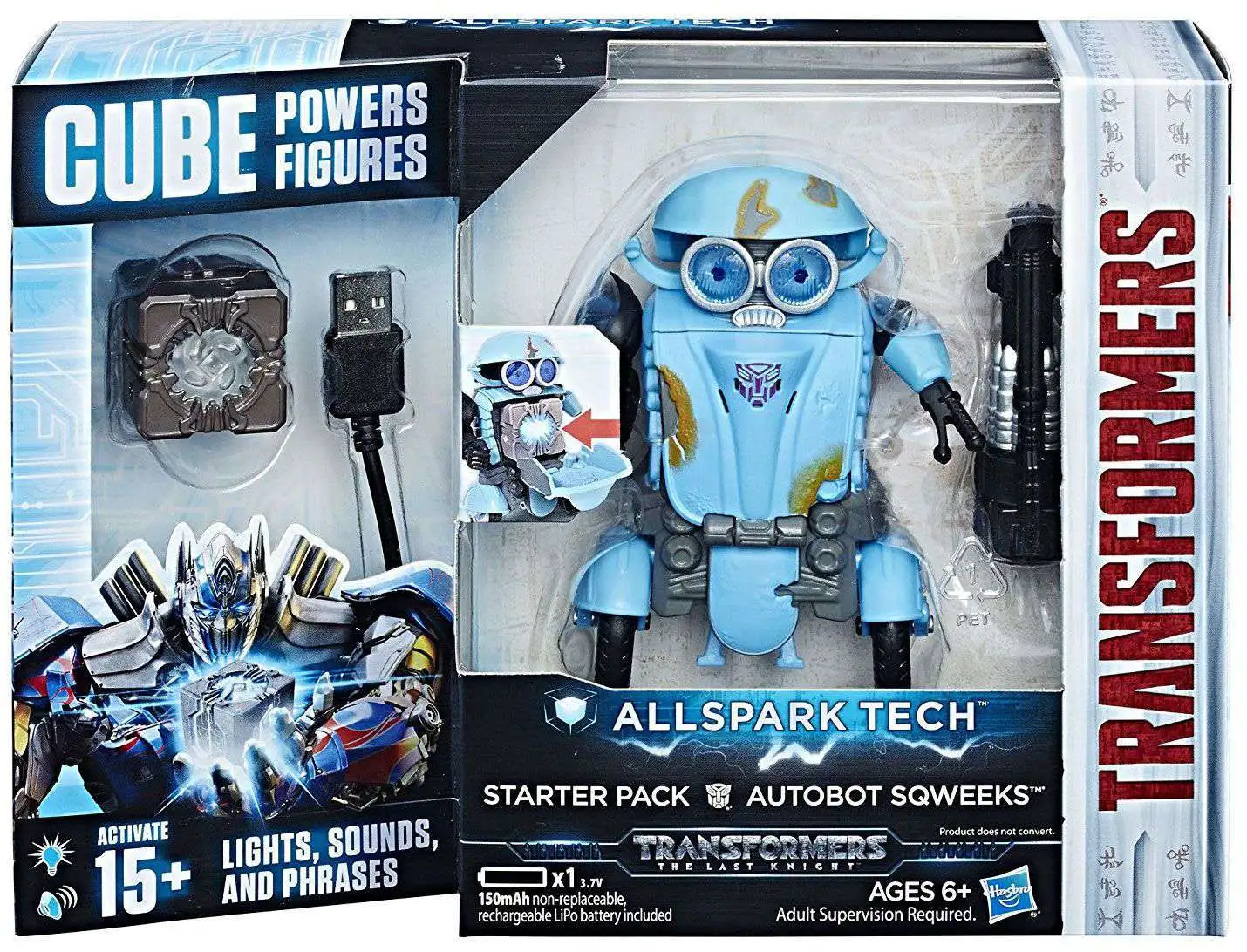 Allspark Tech figures stand at a 5.5-inch-scale and feature classic Transformers conversion with a twist. Unite them with the Allspark Tech cube to bring them to life with motion-activated lights, sounds, and phrases (cube only available in starter pack).