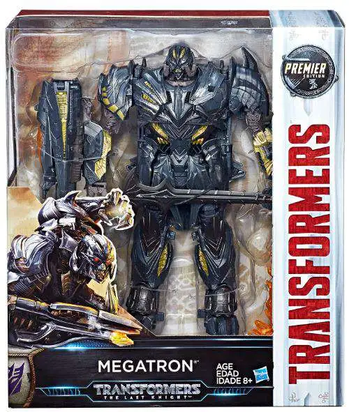 Transformers: The Last Knight Premier Edition Leader Class figures stand at a 9-inch-scale with eye-catching detail. Change this Leader Class Megatron figure between robot and jet modes in 30 steps. Premier Edition lineups include iconic movie characters so fans can join in epic Transformers action.