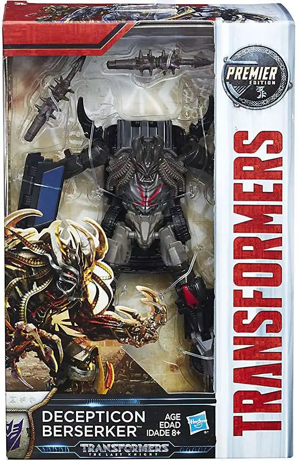 The explosive Transformers saga continues with Transformers: The Last Knight. With the fate of Earth at stake, new heroes must rise in an epic struggle to forge a future for all. The Transformers: The Last Knight Premier Edition Deluxe lineup features highly articulated, 5.5-inch-scale figures with detail inspired by the movie. This Premier Edition features fan favorite characters from Transformers: The Last Knight, so fans can join in the epic Transformers action. Decepticon Berserker is about one thing: destruction. Even for the ruthless Decepticons, his raging violence is intense. Decepticon Berserker will tear everything to pieces and leave nothing intact. His destructive tendencies are impossible to contain, making him a dangerous force few dare to mess with. Figure Specs: Premier Edition Deluxe Decepticon Berserker figure Modes: robot and Chevy Suburban vehicle Converts in 17 Steps Transformers and all related characters are trademarks of Hasbro.