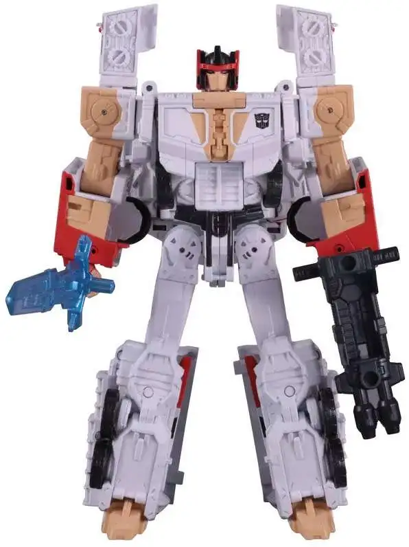 Worlds collide in this Transformers X Street Fighter II mash-up pack! Optimus Prime and Megatron take their legendary rivalry to the competitive fighting video game, Street Fighter II! Both figures are Triple Changers. Optimus Prime [Ryu] figure converts between robot, truck, and jet modes. Megatron [M. Bison] figure converts between robot, tank, and jet modes. Figures feature deco inspired by the classic characters from the Street Fighter II video game. Comes with sword, blaster, fusion cannon, and 2 Headmaster accessories that convert into larger toys heads.